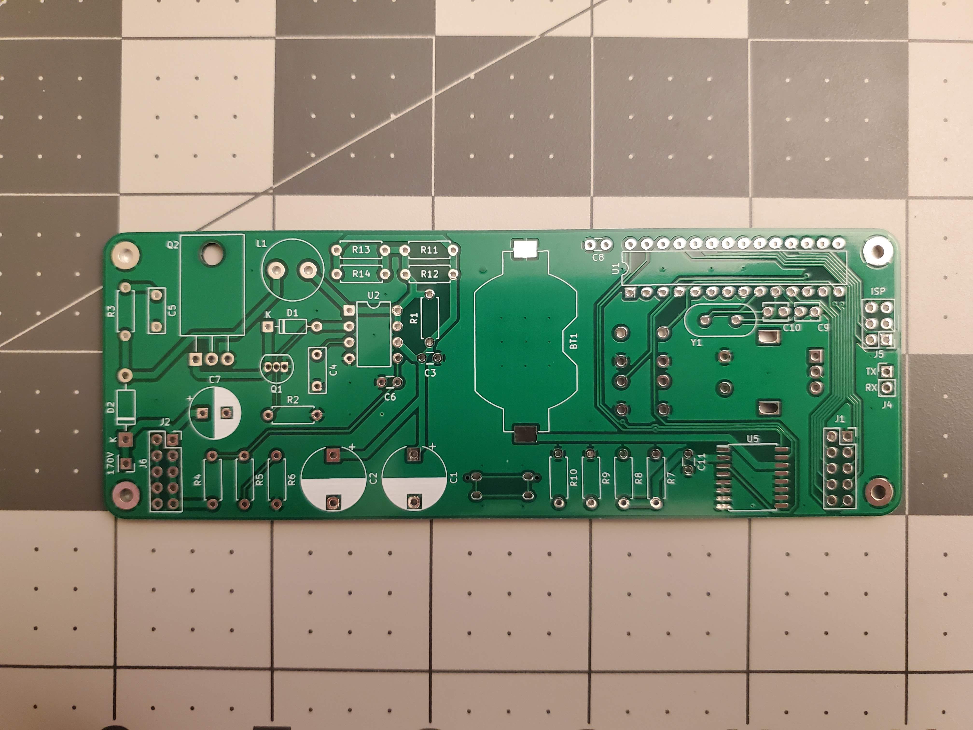 While the above MC34063A design works, it’s far from efficient (I think around 50%) and probably wouldn’t support more bulbs at full brightness. From what I’ve read, a flyback converter design using a transformer instead of an inductor can be much more efficient, though this involves additional complexities in finding / choosing the right transformer. If I make another nixie tube clock with six IN-8 or IN-14 bulbs, I’ll likely look into this kind of power supply.